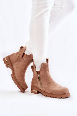 +2Cizme de piele de căprioară cu un fermoar Nicole 2754 Brown