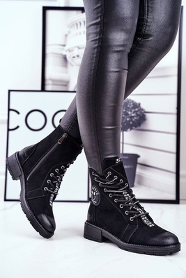 +1Cizme de drumeție plate pentru femei Big Star Black GG274596