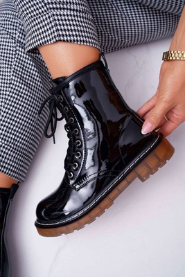 Cizme militare pentru femei plate pentru femei Black Bemmer