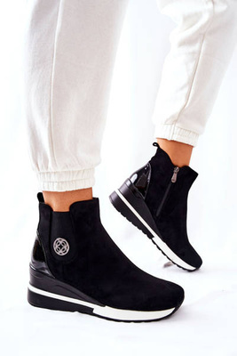 +2Cizme de gleznă pentru femei ascunse cu piele de căprioară vanya neagră