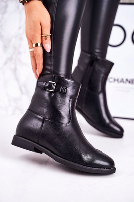 Cizme pentru femei cu lanț de piele de piele neagră Augusta