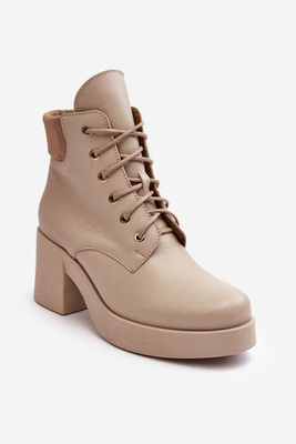 +2Cizme de piele pentru femei pe călcâie bej saitana