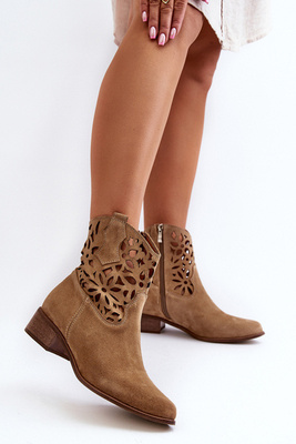 +6Suede Openwork Boots Maciejka 04040-04 Beige