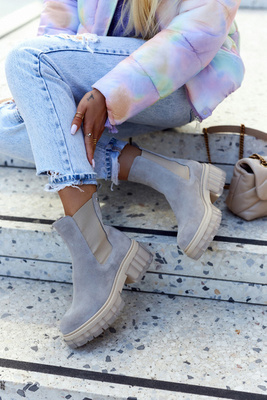 +1Cizme pentru femei din piele de căprioară gri gri deschis