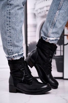 Cizme militare pentru femei plate pentru femei Black Bemmer