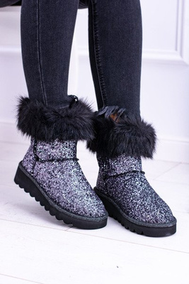 +1Cizme de zăpadă pentru femei înalte cu blana și sclipici patru