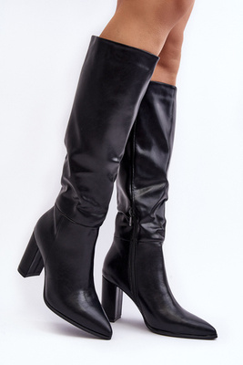 Cizme înalte pentru femei peste genunchi pe călcâi negru Jeine
