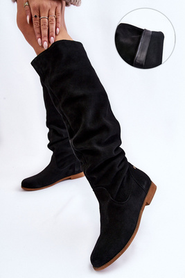 +2Cizme înalte pentru femei din piele de piele de căprioară Lewski 2833 Negru