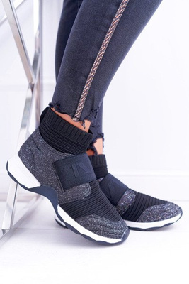 +2Pantofi sport pentru femei Lu Boo cu Phantom de brocart negru de ciorapi