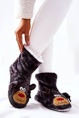 +5Papuci izolați de Crăciun cu renuri negre Rudolph