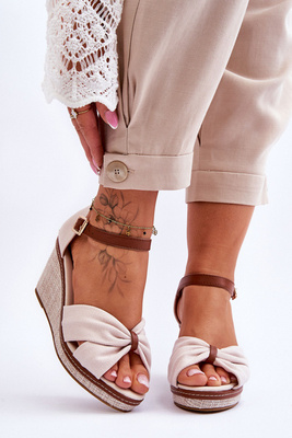 +4Sandale cu pană din piele bej margaritt