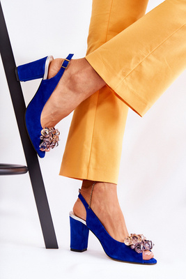 Sandale din piele de căprioară pe un călcâi masiv Maciejka 05543-17 Blue Navy