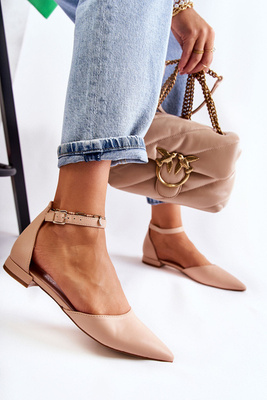 +1Sandale de balerină din piele feminină în caprise bej spitz