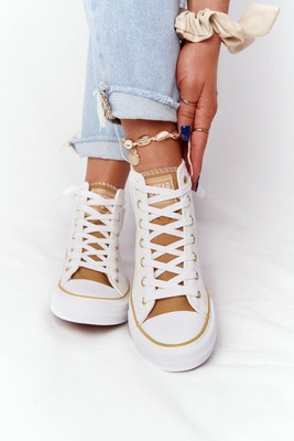 Adidași înalte pentru femei pe o talpă tâmpită bej-bej-alb