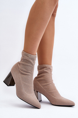 +2Botine din piele intoarsa cu decupaje pe toc bej deschis Dalros