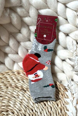 +5Sosete din Bumbac de Crăciun pentru Copii cu Moș Crăciun Gri