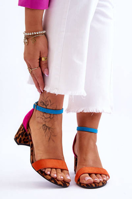 +4Sandale din piele de piele cu toc scăzut în pete, multicolore Quincy