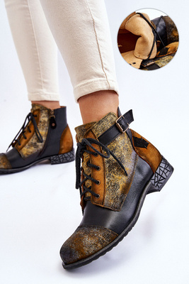 Pantofi pentru cizme din piele pentru femei Maciejka 05077-07 galben-negru