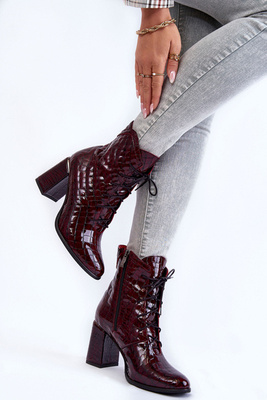 Cizme de gleznă laquate pentru femei Model de crocodil Burgundia Alva