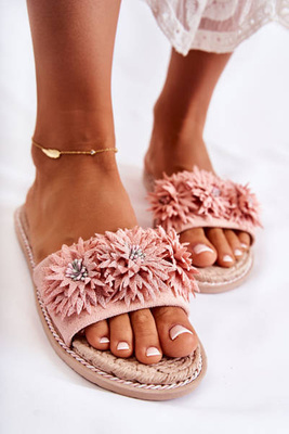 Papuci clasice pentru femei cu ornamente roz scotlyn