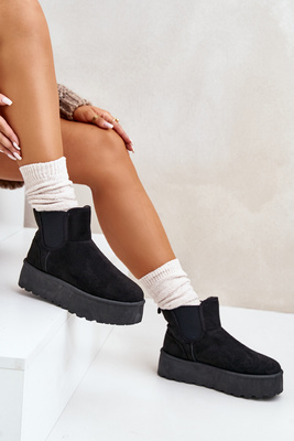 Botine De Zăpadă Femei Pe Platformă Cu Inserții Elastice Negre Rialine