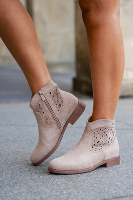 Botine Cu Decupaje Femei Pe Toc Plat S.Barski HY51-113 Bej