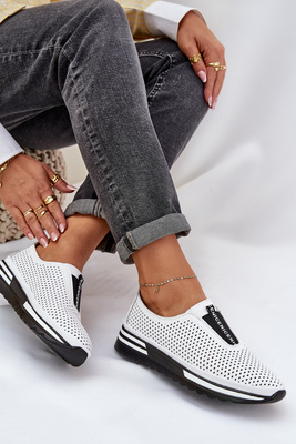 Pantofi Slip-On Pentru Femei Din Piele Naturală S.Barski LR51-672 Albi