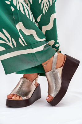 Sandale Femei Din Piele Ecologică Pe Platformă Și Tocuri Aurii Leaniria