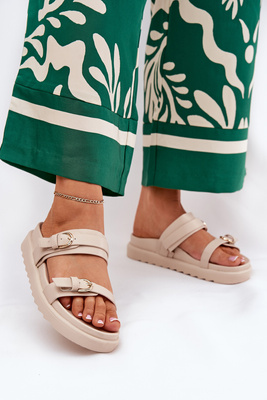 Sandale Femei Pe Platformă Cu Catarame Aurii Bej Wernone