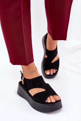 Sandale Dama Pe Platforma Eko Suede Negre Karonia