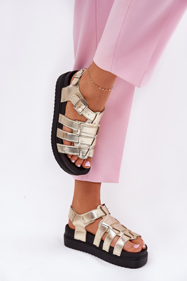 Sandale Dama Pe Platforma Cu Catarame Aurii Atarafas
