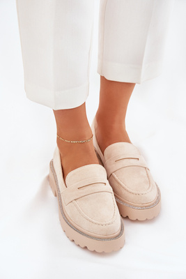 Mocasinii ecologici din suede pentru femei cu zirconii bej Wilamla