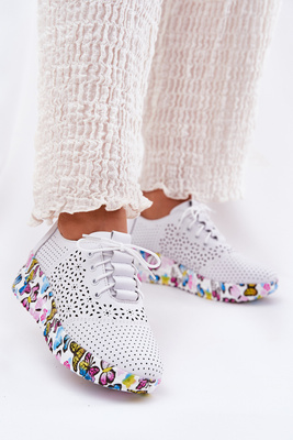 Pantofi Din Piele Perforați Pentru Femei Pe Toc Fluturi Artiker 56C1618 Albi