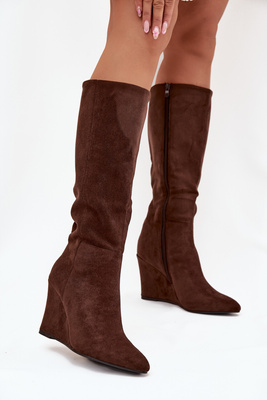 Cizme de damă călduroase pe toc din ciocolată Rosina