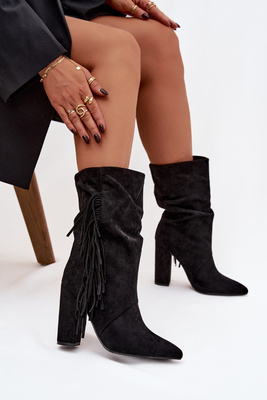 Darlina Botine Femei Cu Franjuri Și Strângere Izolate Negre