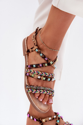 +1Sandale pentru femei cu decor și curele împletite leopard Delyra