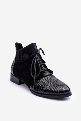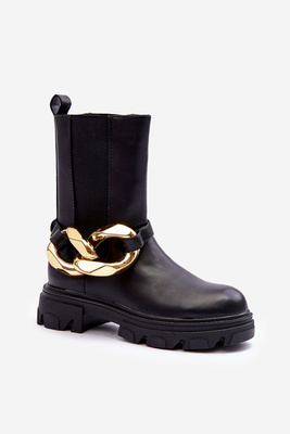 Cizme înfrumusețate din piele Muncitor Black Carshena