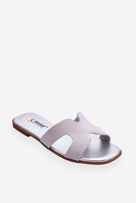 +1Papuci clasice din piele pentru femei alb-argint nancy