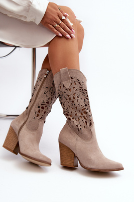 Cizme cowboy din piele Beige Zazoo 3166/P
