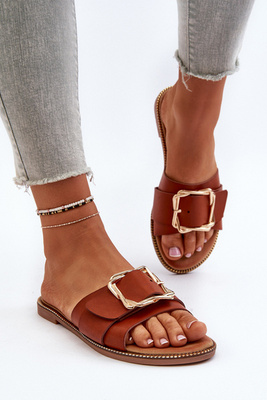 Papuci de damă cu curea și cataramă aurie Opahiri