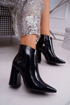 Cizme de stiletto pentru femei, îngrășătoare negre lăcuite