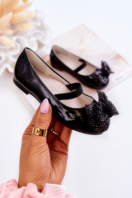 +2Dětské lakované bailerínky s mašlí negru zolly