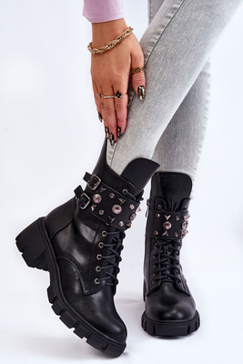 Cizme calde pentru femei cu decorare frontală tilda neagră