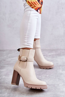 +1Cizme din piele pe un post cu o centură decorativă bej maresol