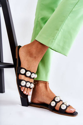 Papuci pentru femei cu perle decorative Tacoma neagră