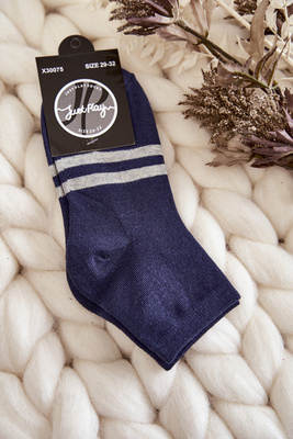 +4Șosete de tineret în două culori cu dungi albastru-gri-navy
