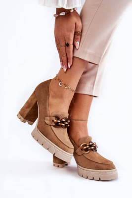 Sandale cu toc înalt din piele Laura Messi 2425 bej