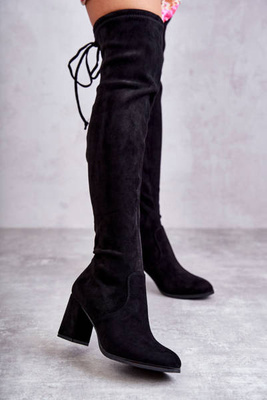 +1Cizme clasice de piele de căprioară înaltă Clarissa neagră