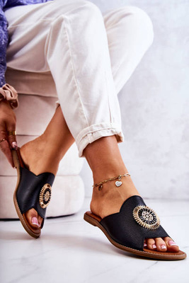 +1Papuci din piele pentru femei cu cataramă la.fi Nariss negru