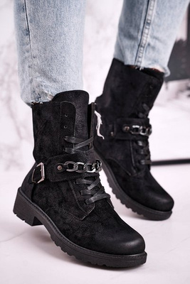 Cizme pentru femei cu lanț de piele de piele neagră Augusta
